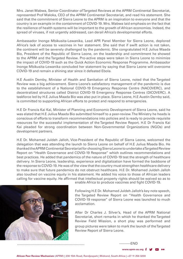 African Peer Review Mechanism Aprm On Twitter Communique Launch Of The Targeted Review Report On Health Governance And Covid 19 Response In The Republic Of Sierra Leone Https T Co Za9bgy7abt Https T Co Kflvni8ebl